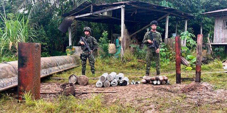 Soldados de la Fuerza de Tarea Conjunta Titán ubicaron en zona rural del municipio de Istmina un área campamentaria del…