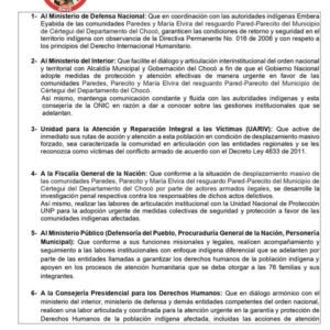 La Oficina Nacional de Asuntos Indígenas de Colombia (ONIC) ha emitido una alerta sobre un desplazamiento interno que está afectando a 286 indígenas en el municipio de Cértegui, ubicado en el departamento del Chocó. Según la denuncia de la ONIC, las comunidades indígenas Paredes, Parecito y María Elvira del resguardo Pared-Parecito han sido desplazadas a causa de la presencia y actividades de los grupos armados AGC y ELN en la región.