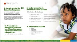 La reconstrucción de cada escuela está estimada en 2.400 millones de pesos, incluyendo su infraestructura, mobiliario, material didáctico y menaje para los restaurantes escolares.