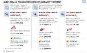 Esto se da también tras las afirmaciones de Nubia Carolina Córdoba, gobernadora del Chocó, quien desde el pasado sábado, aseguró que las aerolíneas que operan rutas desde el resto del país hacia el departamento “suben cuatro, cinco o seis veces más el precio ordinario en este momento”, aunque no detalló qué empresas.