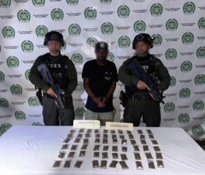En el marco de los planes de control y vigilancia desplegados por el Grupo de Operaciones Especiales (GOES) del Departamento de Policía Chocó, se lograron tres capturas en flagrancia por los delitos de porte de estupefacientes y porte ilegal de arma de fuego en el barrio La Esmeralda, zona urbana de Quibdó.